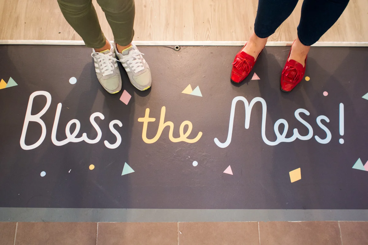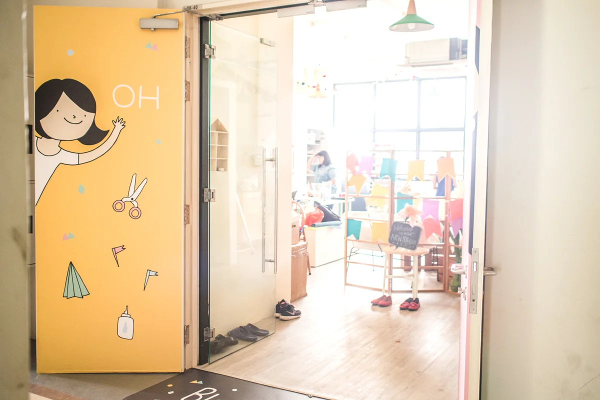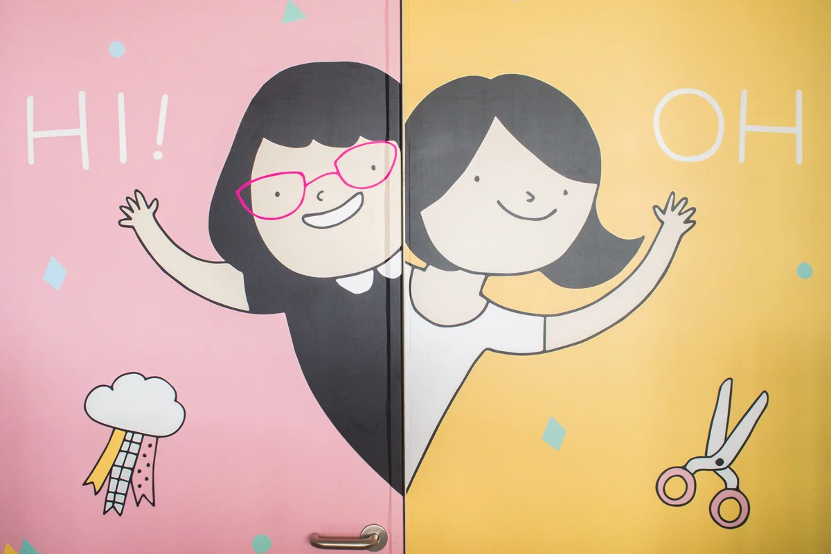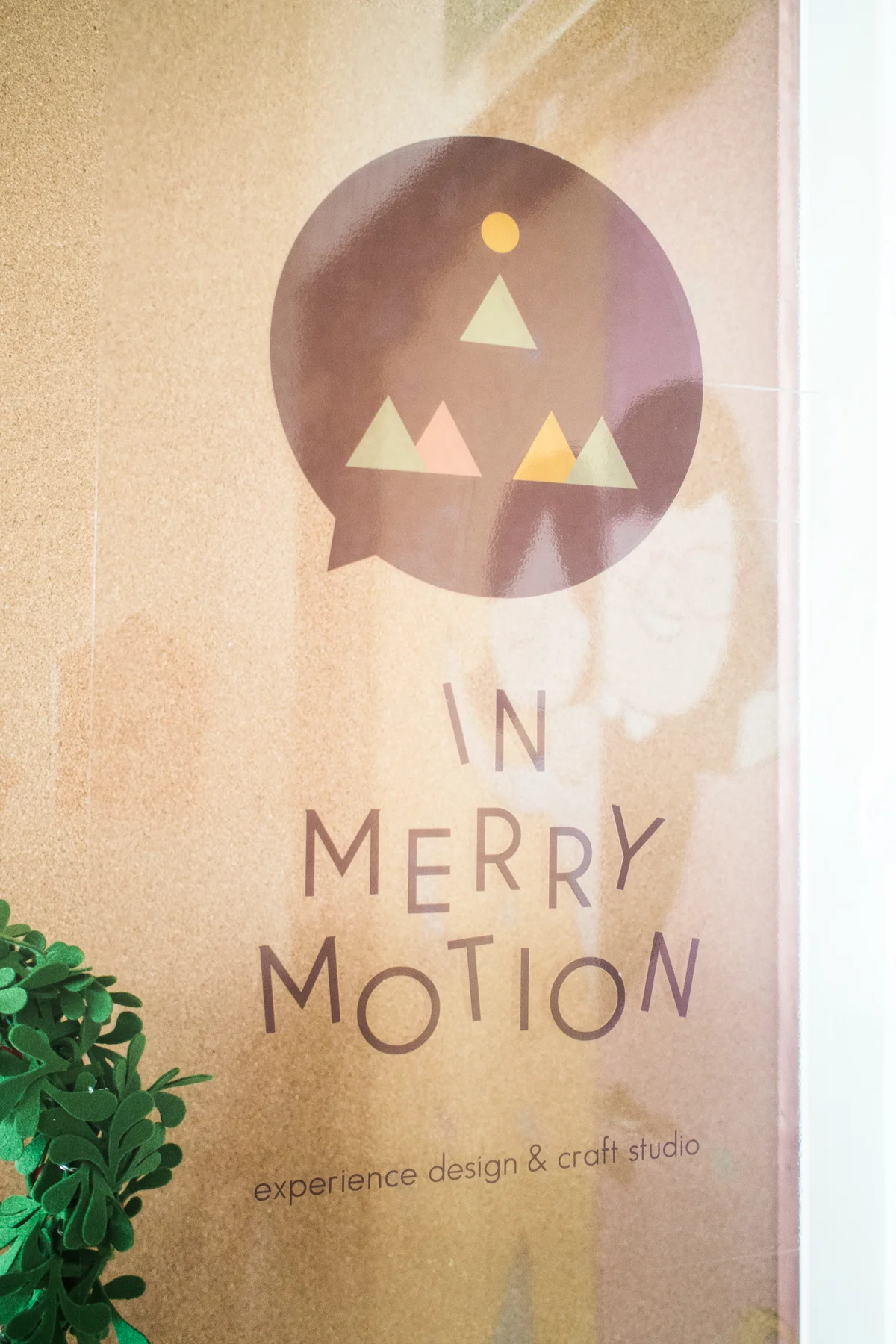 The entrance was to be inviting as well as pique the curiosity of corridor bypassers. When closed, it was a mural of what In Merry Motion was capable of: Curating atmospheres, crafting celebrations, hosting craft parties and designing celebrations. You know, the works! When the doors were open, it was a lovely greeting that welcomed their clients in.
