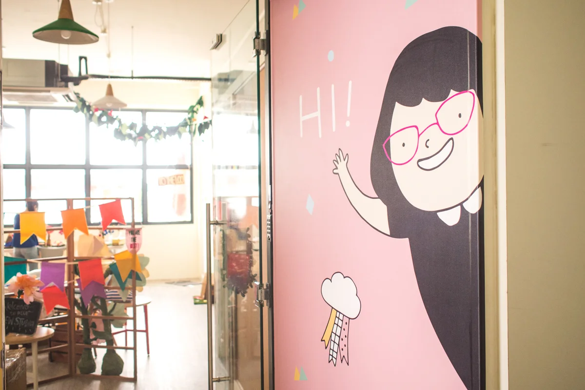 Two good friends who met during their design days in university set out to open their own craft and experience design studio: In Merry Motion. To inaugurate their very own studio space, I put together an entrance illustration that embodied the joyful spirit, ever-tinkering fingers and passion for crafting. We took inspiration from the tools and materials used in their work, giving also a sense of rhythm and boundless energy that was in them when they approach their creative work.